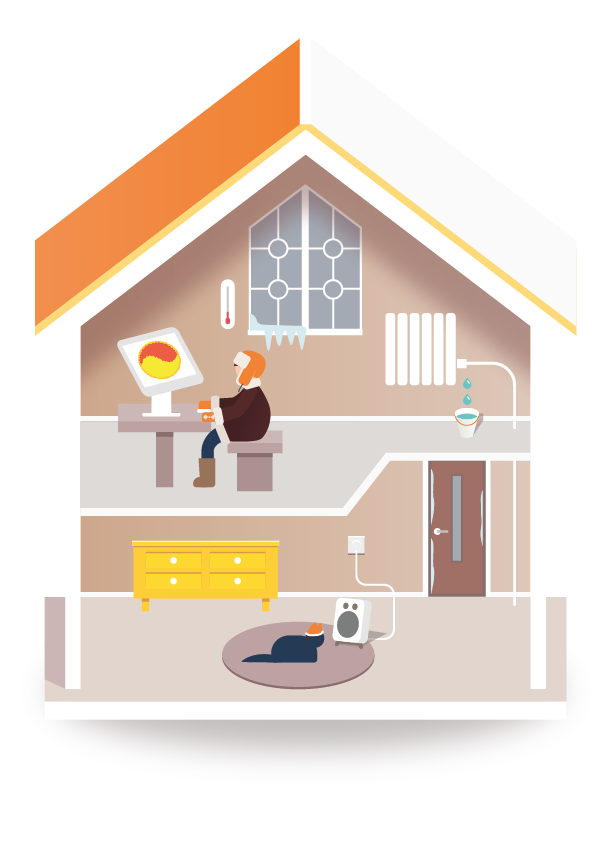 от одного дома до другого. В первом доме обычное оборудование, поэтому в нем наледь на подоконнике и течь в батарее.