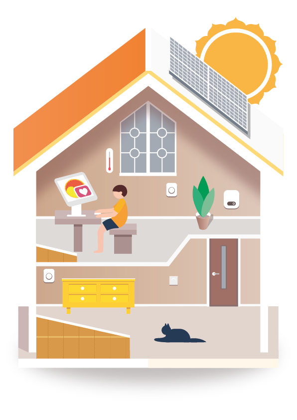 Во втором доме оборудование Хитлайф: солнечные панели на крыше, сетевой инвертор и терморегулятор на стене,